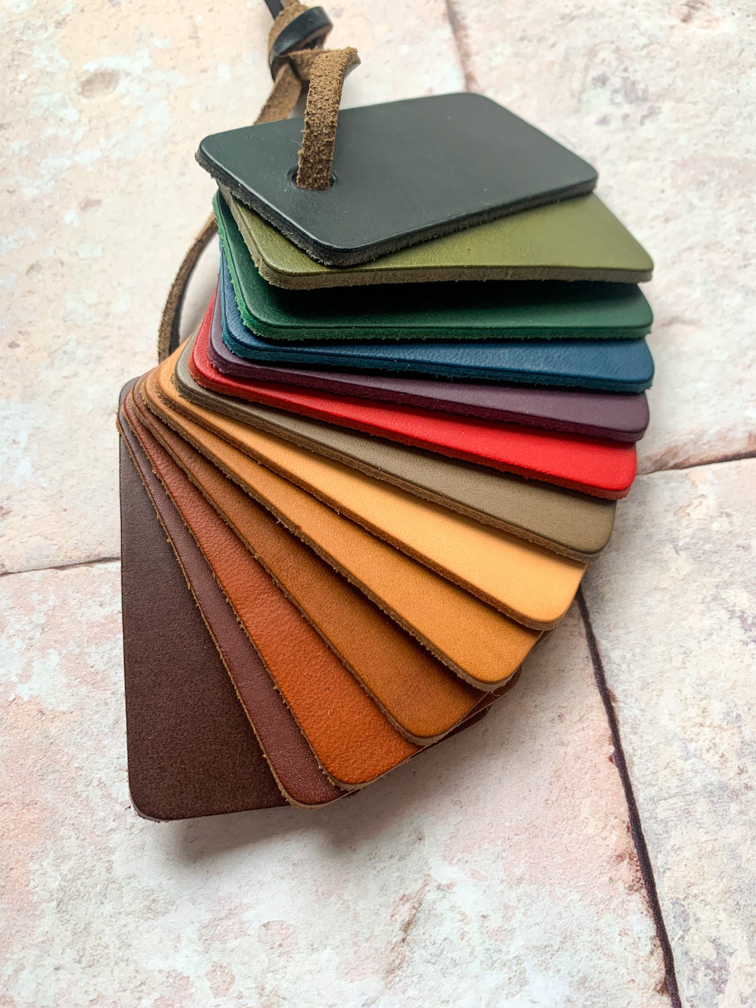 Available in a selection of colours but if you are after something specific please get in touch. Your logo will be etched in to leather and will appear a darker colour to the rest of the coaster, I can't offer a colour of the engraving at this time. These samples are 2.8mm thick.