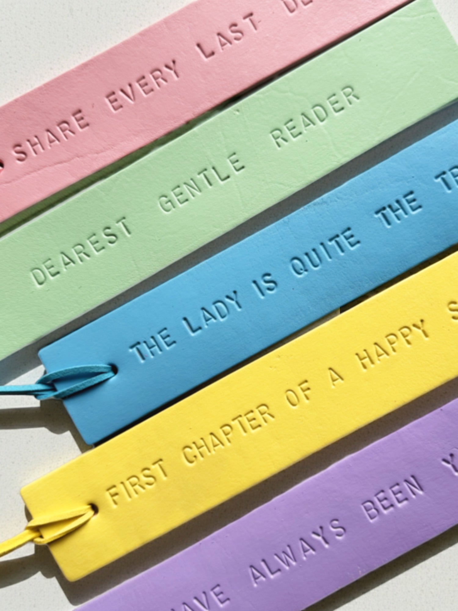 Add a pop of colour to your reading with these beautifully handcrafted pastel leather bookmarks. Each one is made from high-quality vegetable-tanned leather and carefully hand-painted in soft, uplifting shades of blue, lilac, pink, yellow, and mint green.