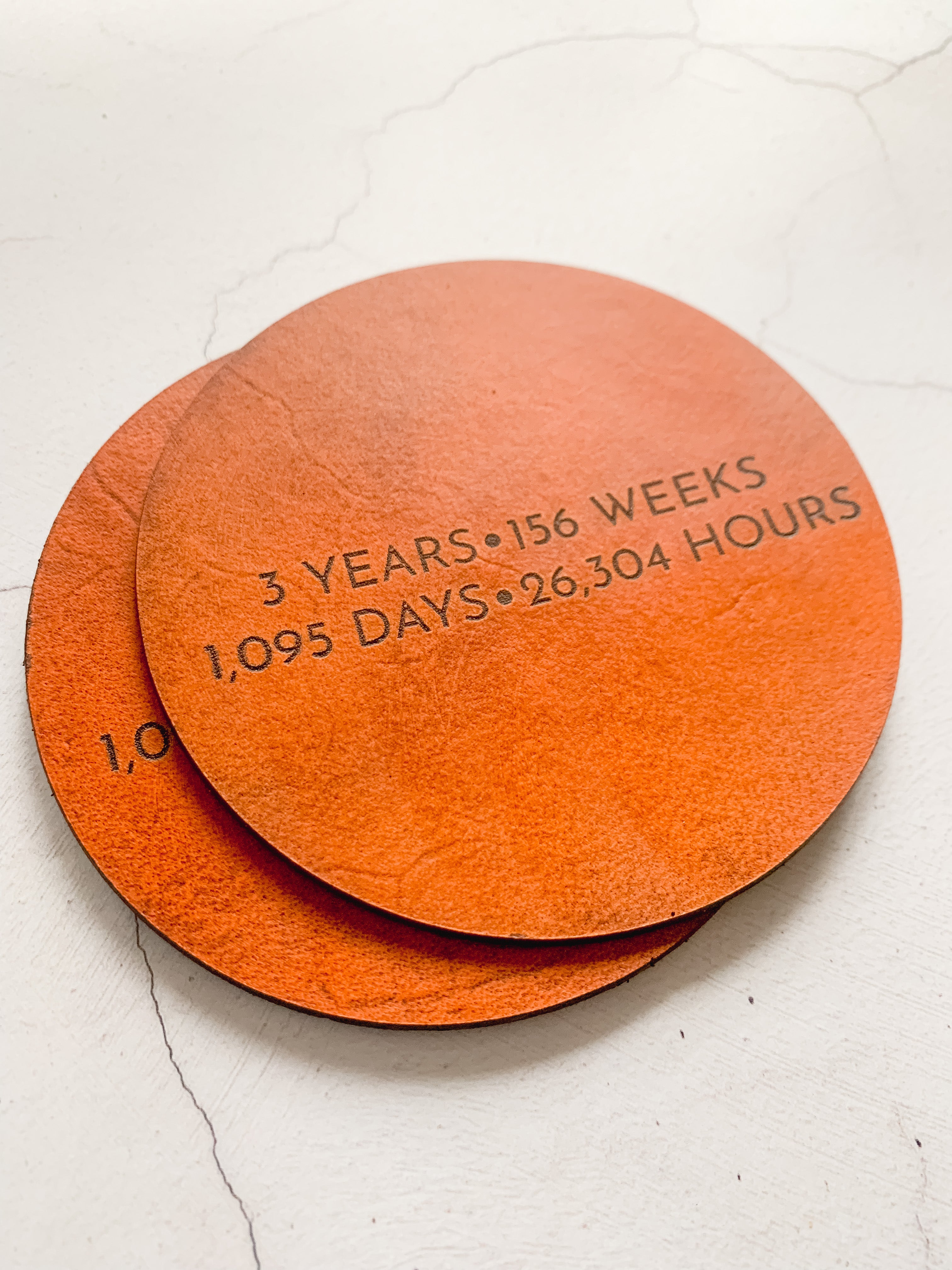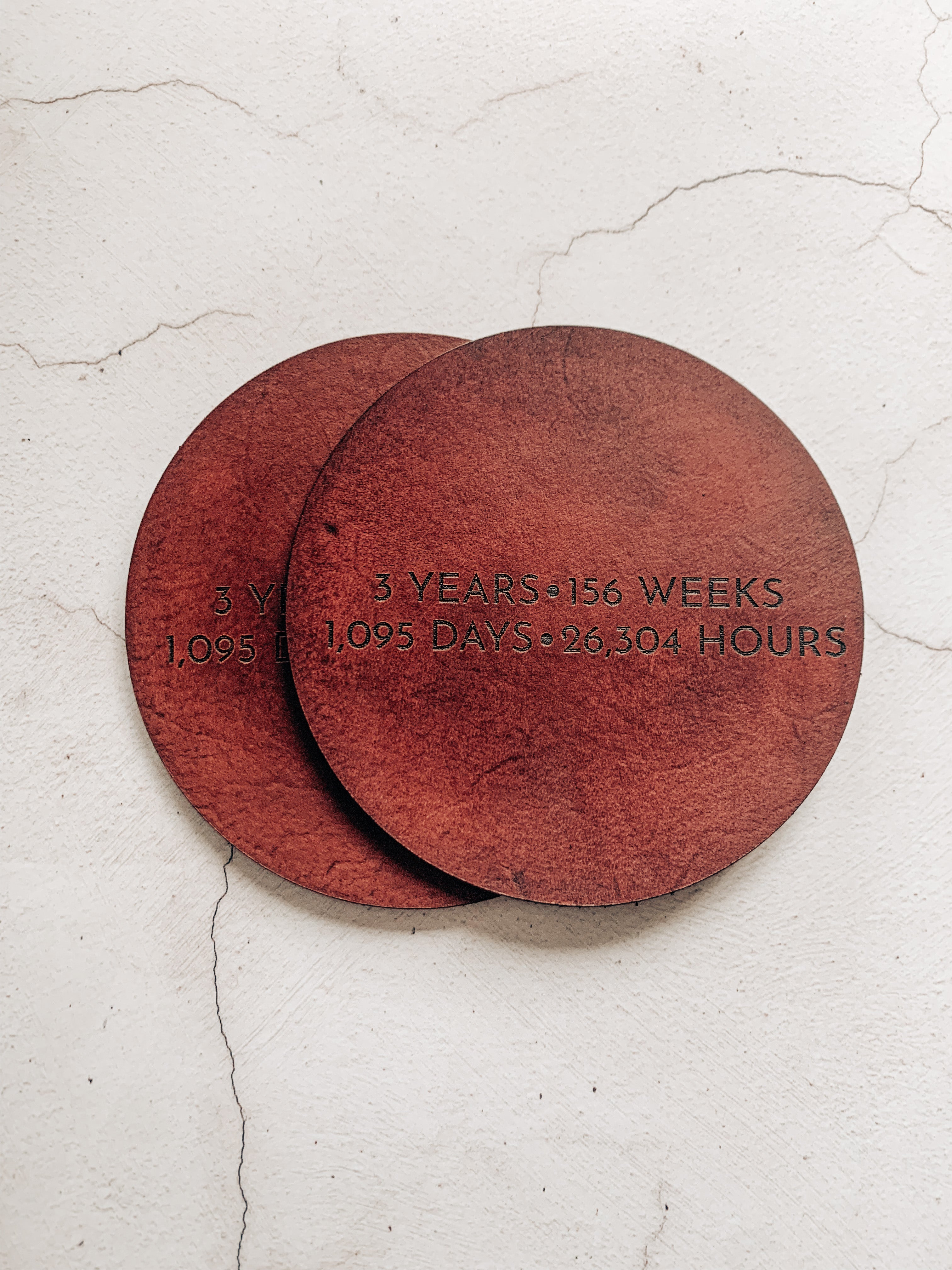 PLEASE NOTE these coasters are dyed with leather dye by hand! So they will have a slight texture to them and vary from the images. Each leather hide takes on the dye slightly differently so colours may vary