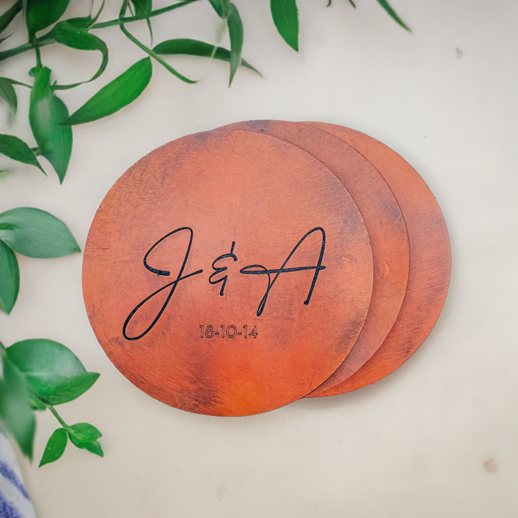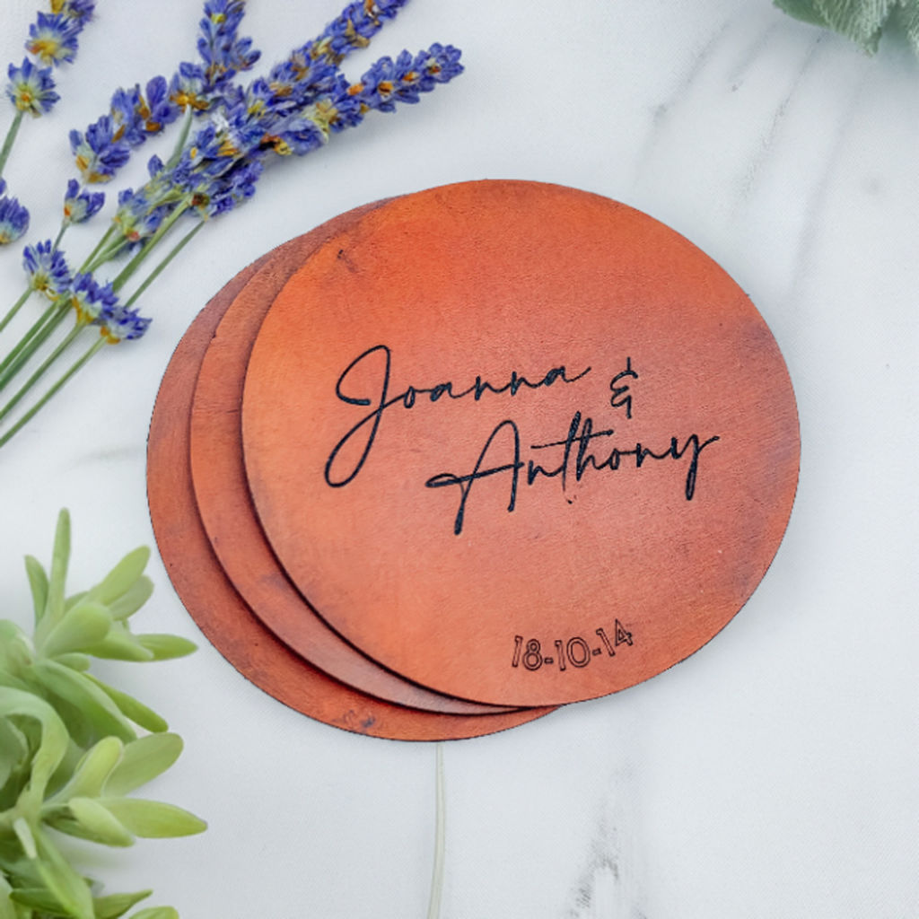 Laser engraved leather coaster, these make the perfect 3rd Anniversary gift.