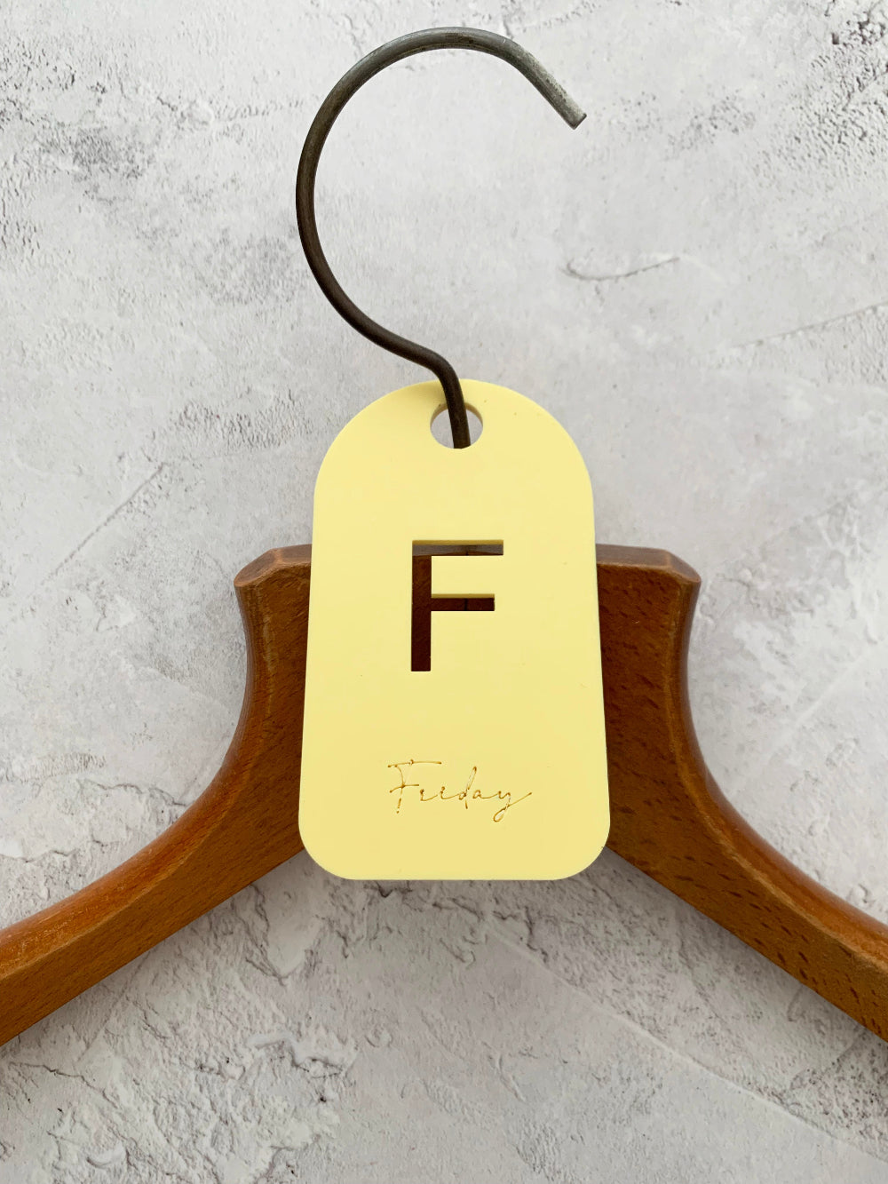 Make your mornings stress-free and your wardrobe beautifully organised with our Acrylic Days of the Week Hanger Tags – the key to effortless, elegant outfit planning.