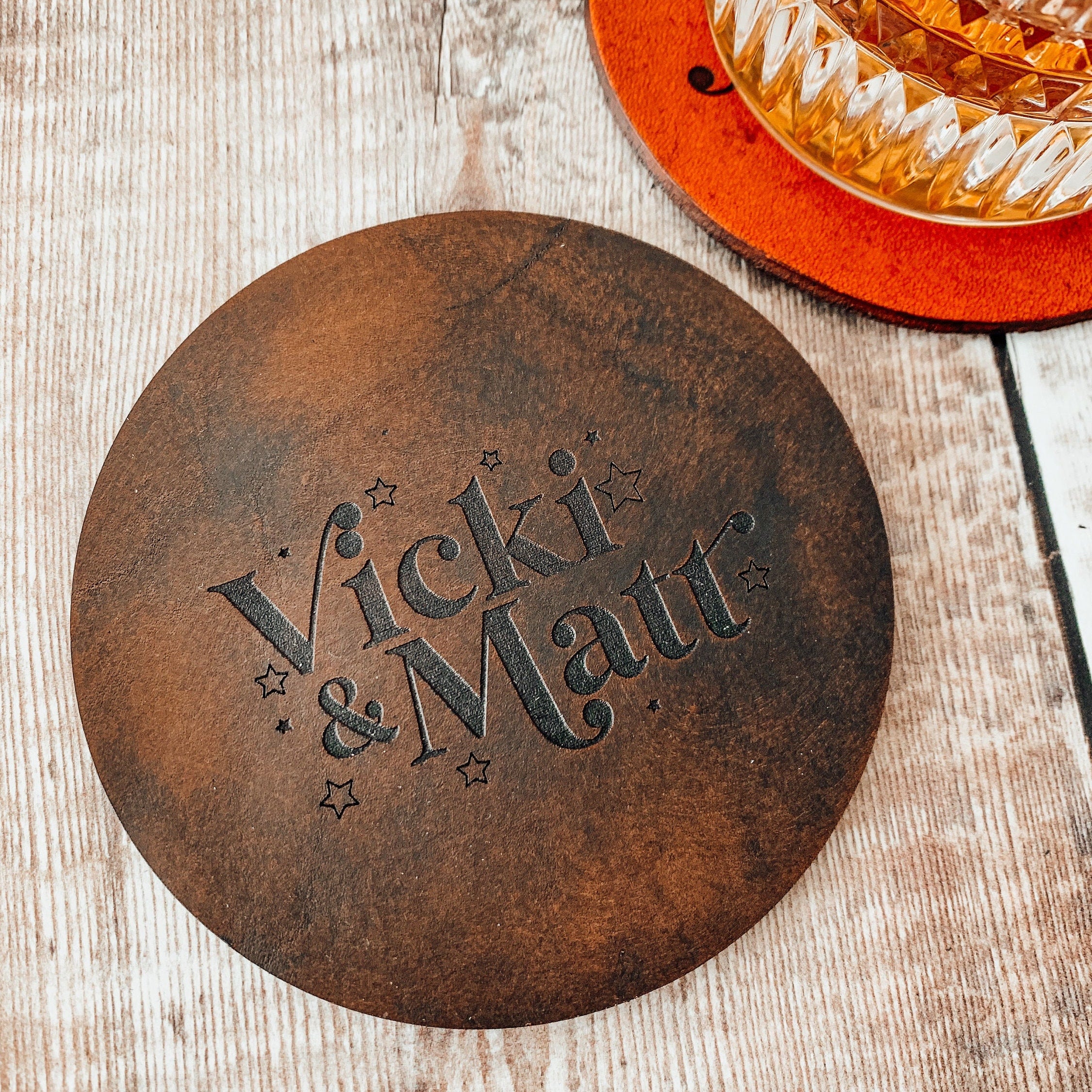 PLEASE NOTE these coasters are dyed with leather dye by hand! So they will have a slight texture to them and vary from the images.