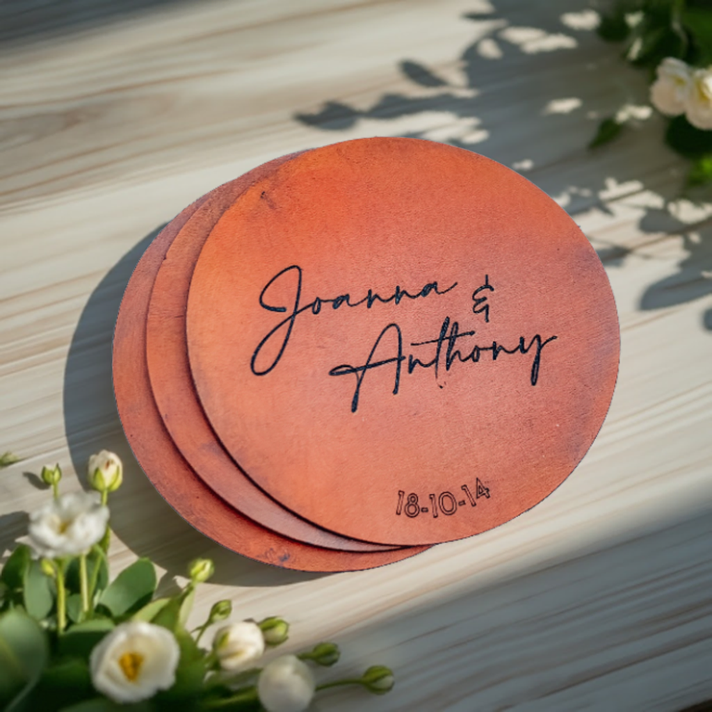 Laser engraved leather coaster, these make the perfect 3rd Anniversary gift.